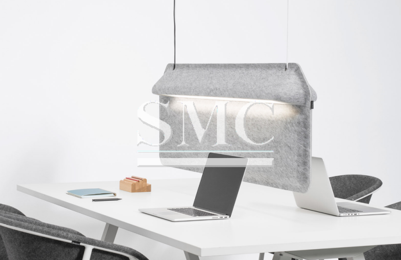 The felt AK 2 Workspace Divider Lamp creates a visual and audio shield from the person sitting on the other side of it.