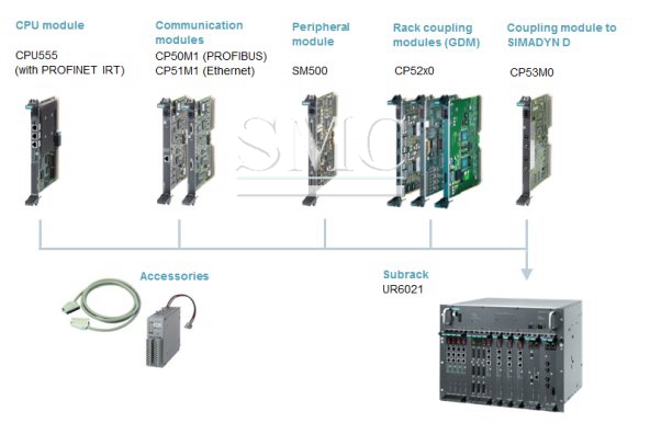 SIMATIC TDC is a modular multi-processor system which consists of one or several subracks. The subracks (VMEbus standard) are equipped with processor, periphery and communication modules. For the connection to further automation components SIMATIC TDC supports the communication standards are PROFINET/ PROFIBUS / Industrial Ethernet.
