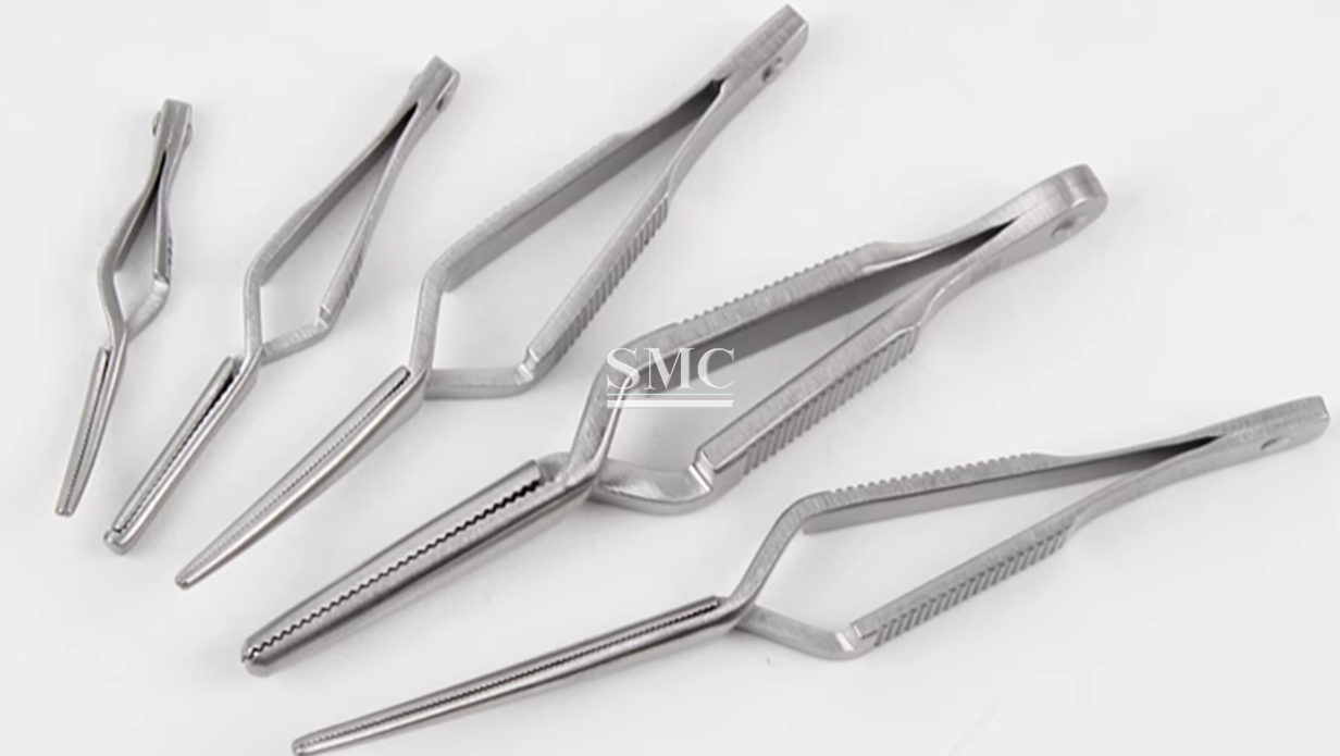 Micro vascular clamps are U- or V-shaped, with locking clips or consisting of a pair of blades superimposed at the end, and are made of metals such as titanium alloy and stainless steel. During surgery, doctors can use micro vascular clamps to clamp bleeding points and stop bleeding by clamping blood vessels or tissues and blocking blood flow. The sharp tips of the clamping jaws allow for easy clamping of blood vessels