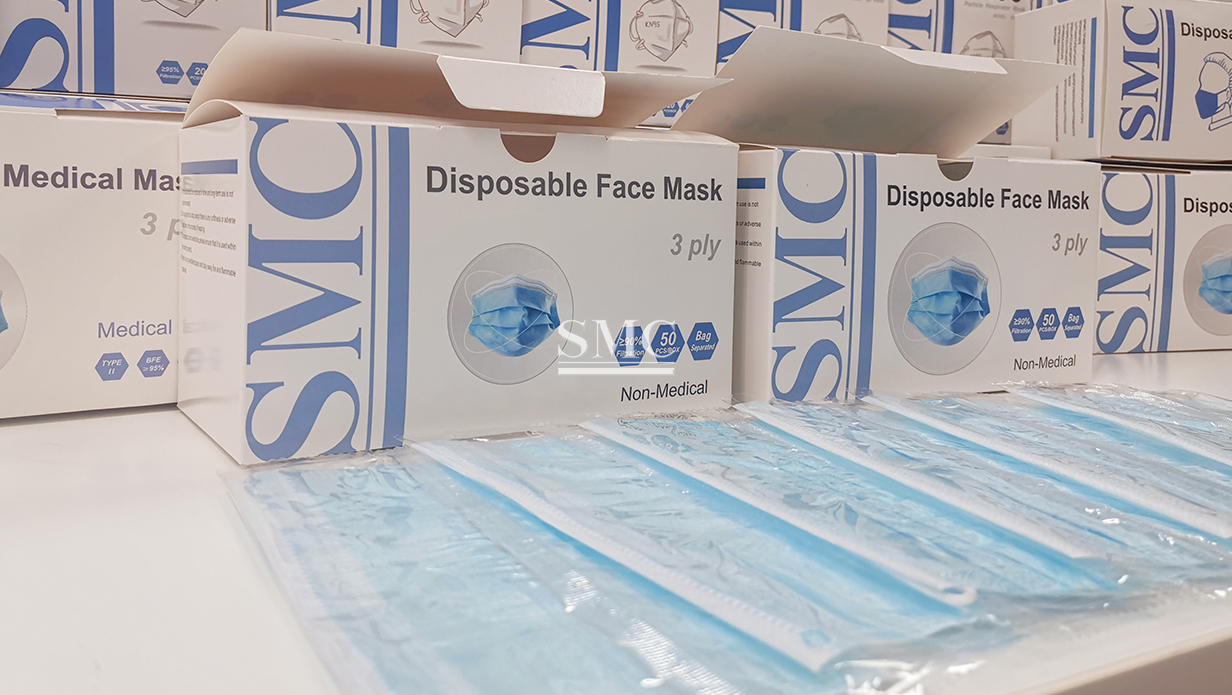 SMC disposable surgical face masks are made of high performance PP non-woven fabric, melt-blown fabric, high quality nose bridge and ear loop. The 3-ply construction can effectively prevent blood spatter during the operation and protect the safety of surgeon. Each mask provides very low resistance to breathing. Masks are hypoallergenic, latex, fiberglass-free.