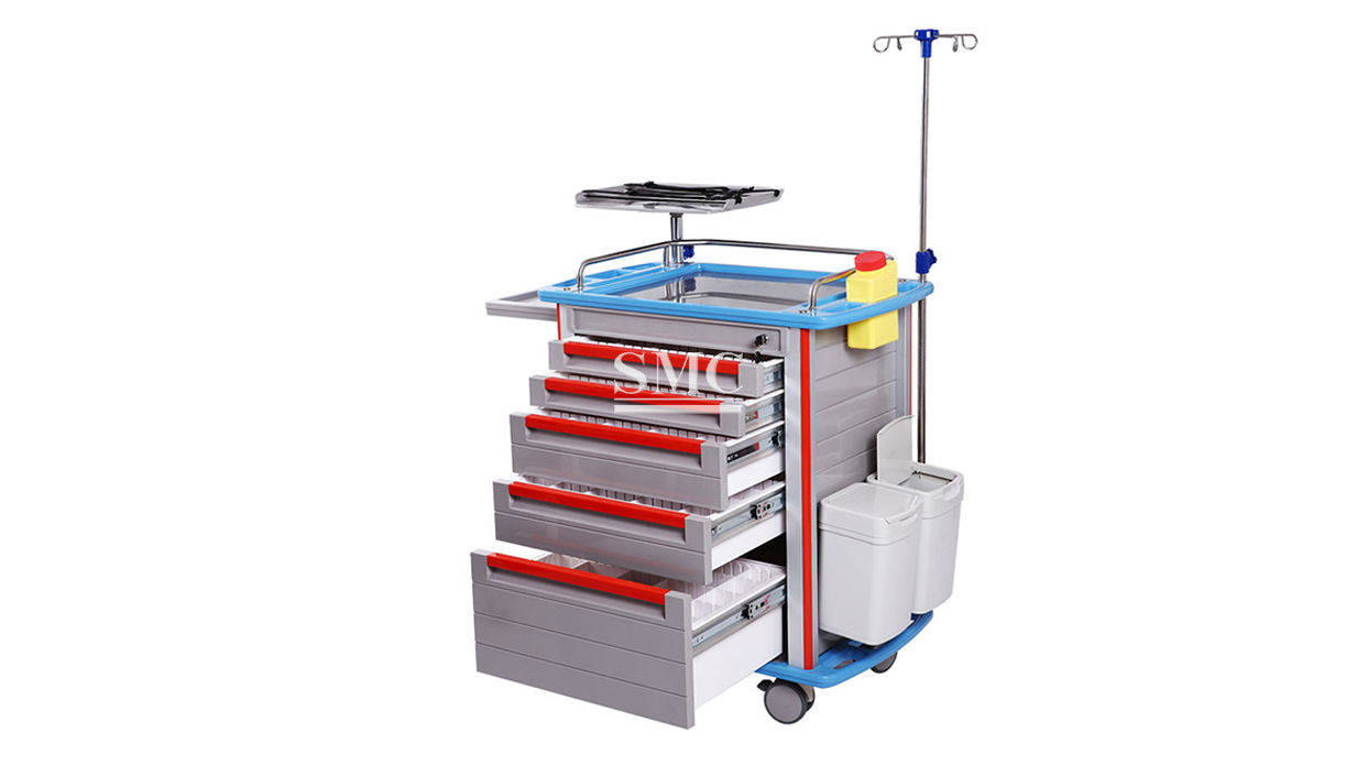 Emergency carts are common equipment in medical institutions, used to facilitate the movement and storage of various medical devices and drugs by medical personnel.It has multiple functions such as storage, organization, carrying tools, infusion, electrocardiogram monitoring, bedside medical care, portability, and isolation. In addition, it also features reasonable structure, safe materials, easy operation, easy cleaning and versatility. The existence of emergency carts greatly improves the work efficiency and medical quality of medical personnel, which is crucial for the normal operation of medical institutions.