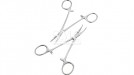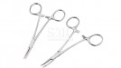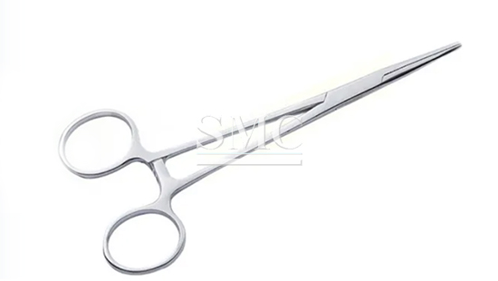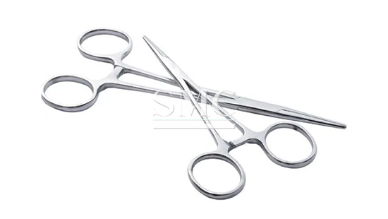 Hemostatic forceps or Hemostats (when used to clamp control blood flow) are a surgical instrument used to prevent the flow of blood from an open blood vessel by compressing the vessel. Hemostatic forceps are usually curved or straight and have serrations along the jaw to grasp onto small blood vessels, large blood vessels, or to grasp medium to heavy tissue during a surgical procedure.