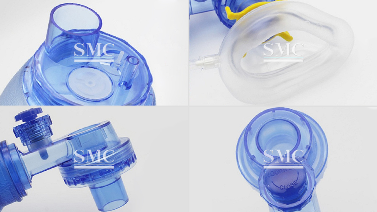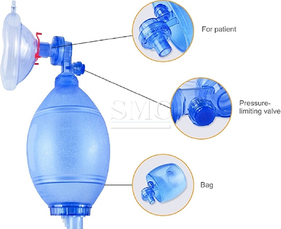 Low-resistance valves prevent re-breathing and allow exhaled gas to escape;