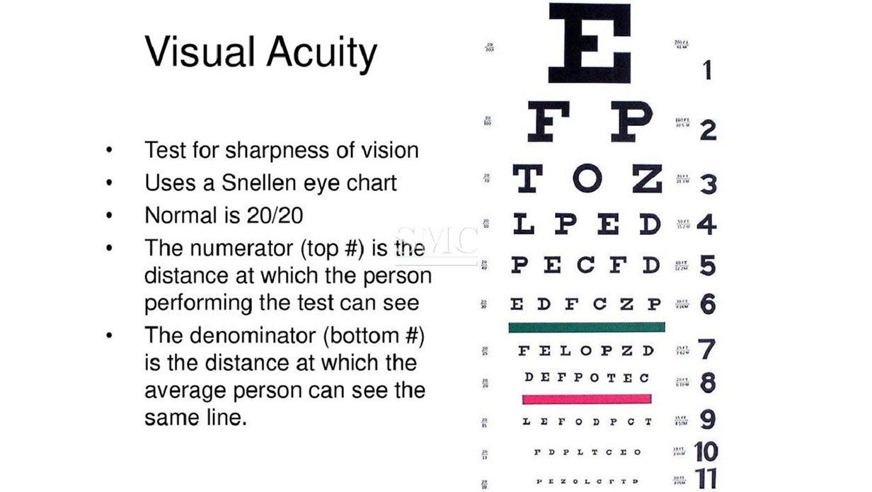 A Snellen chart is an eye chart that can be used to measure visual acuity. Snellen charts are named after the Dutch ophthalmologist Herman Snellen, who developed the chart in 1862. Many ophthalmologists and vision scientists now use an improved chart known as the LogMAR chart. SMC eye chart could either be home use or for shops. It will help you determine the clarity of your distance vision. This can be useful to screen children for nearsightedness, which causes blurry distance vision. The chart also can help you determine if you meet the legal visual acuity requirement for a valid driver’s license (20/40 in most states).
