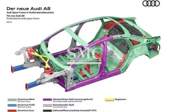 Audi, our recognized leader in all-aluminum bodywork, used the Audi ASF all-aluminum frame on the A8 and TT, which has greatly improved the fuel economy and driving experience of the vehicle. The evaluation is a forward-looking move. However, when the new A8 met us, we found that the A8, which combines many cutting-edge technologies, abandoned the application of the all-aluminum body. What is this?